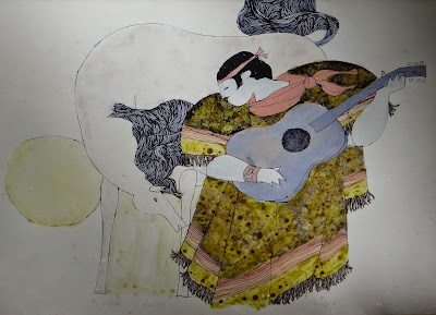 Este trabalho, provavelmente uma musicista espanhola, estava a venda no Brique da Redenção.